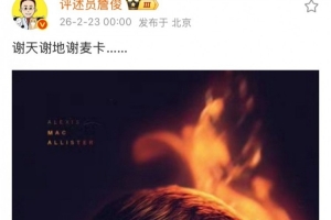 赛后知名解说詹俊在社媒评论道:“谢天谢地谢麦卡…”。