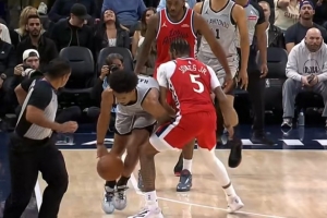 GIF-哈珀明显出界,裁判吹马刺球权,快船挑战成功