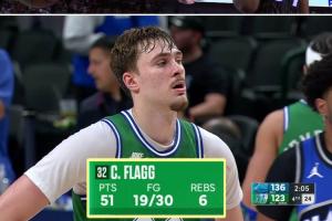 据统计,弗拉格成为了自2009年詹宁斯后首位砍下50+的新秀,当时代表雄鹿出战的詹宁斯在09年11月14日对阵勇士的比赛,狂砍55分!