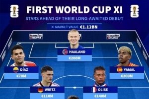 首次参加世界杯阵容:亚马尔、哈兰德、维尔茨在列,总价11.2亿欧