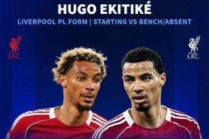 埃基蒂克首发时利物浦本赛季英超21战14胜,未首发时11战2胜