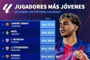 体育资讯4月12日讯 西甲第31轮比赛,亚马尔1射2传,帮助巴萨主场4-1击败西班牙人。此役是亚马尔出战的第100场西甲比赛,他成为赛事历史达成这一里程碑最年轻的球员。