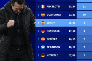 体育资讯4月17日讯 欧联杯1/4决赛,维拉两回合双杀博洛尼亚闯进半决赛。对于维拉主帅埃梅里而言,他实现了一项了不起的成就。进入新世纪,埃梅里共9次闯进欧战半决赛,仅次于穆里尼奥、安切洛蒂以及瓜迪奥拉3位名帅。