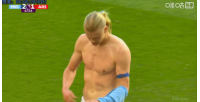 比赛第67分钟,哈兰德在拼抢中紧身衣被加布里埃尔扯出,随后他脱下紧身衣直接送给了场边的球迷。