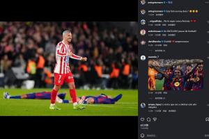 体育资讯03月04日讯 国王杯半决赛次回合,巴萨3-0击败马竞,但仍以总比分3-4无缘决赛。赛后马竞球员、巴萨旧将晒出庆祝照,背景是出局后瘫倒的巴萨球员。